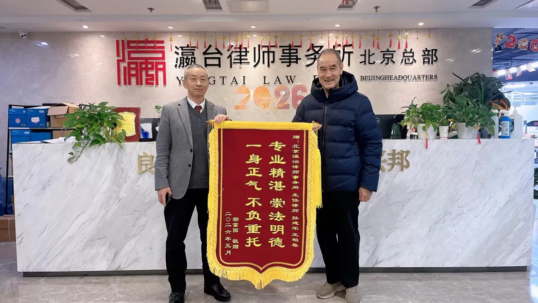 近日,北京瀛台律师事务所孙建军、王柏春两位资深律师收到当事人邢先生专程送来的锦旗,锦旗上书“专业精湛,崇法明德,一身正气,不负重托”,字字千钧,既是对二位律师专业能力的高度认可,也是对他们在案件中付出的辛勤努力的由衷致谢。此次致谢源于一起历时八年、涉及三起关联案件的复杂纠纷,孙建军、王柏春律师凭借深厚的专业积淀与精准的破局思路,成功为当事人免除近20万元赔偿责任,实现三案全面翻盘。